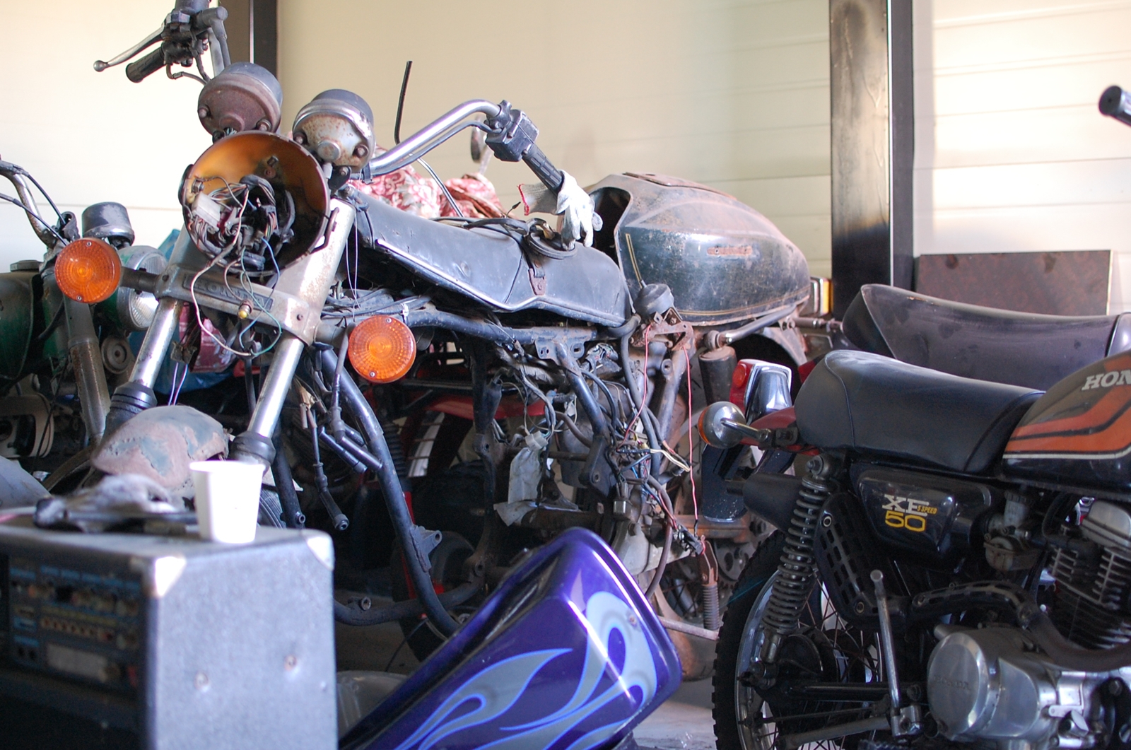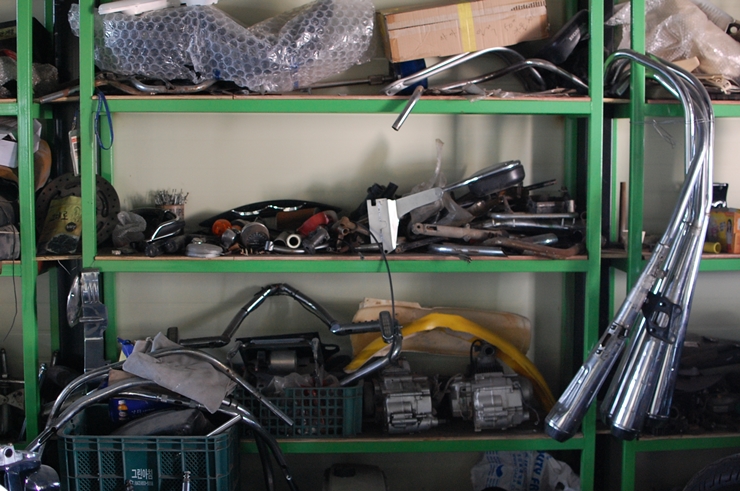 게라지에는 여전히 미, 독, 일의 올드바이크들이 미세먼지로 분칠한 채 소리없이 옹송거리고 있어요