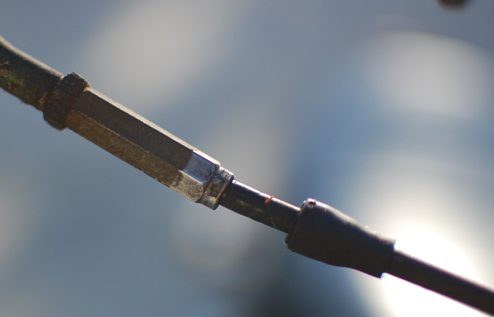 게라지 한켠에서 형님이 허는 일들은 보통 보도를 조이거나 풀거나, 마후라 빠우치거나, 판떼기 후기칠허는 것인데 이날은 안락의자에 깊숙이 앉아 볕쬐고 계십니다