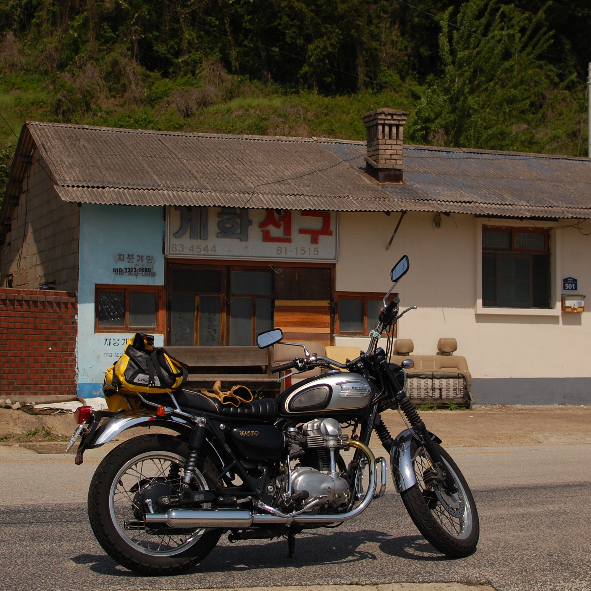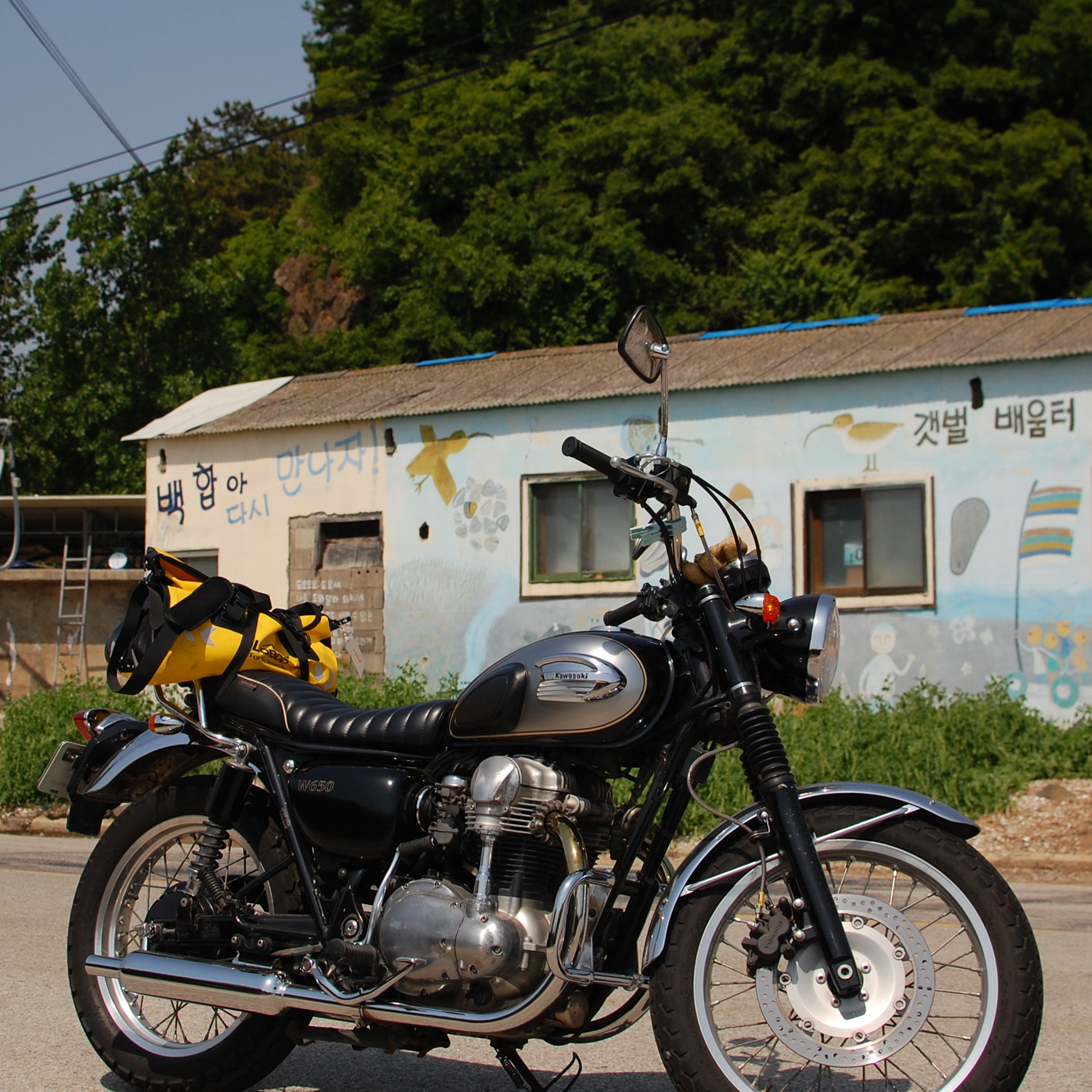 이틀 전엔 체감온도 42도의 끈적끈적한 Phuketic alley를 오후내내 걸었는데 오늘은 5월치고는 이례적으로 선선허기 모처럼만에 오도바이를 끄시고 계화도에 들른다 각각 계화선구, 근대화수퍼, 그레마을회관을 배경으로 한캇트씩 남기고 저류지파고라에 로보백을 푼다